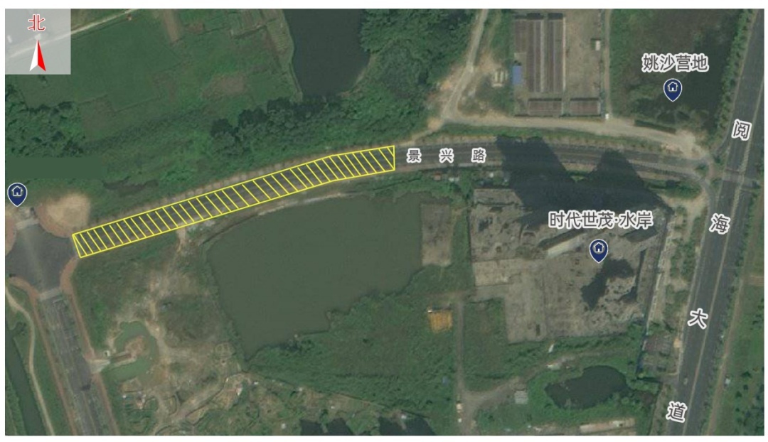 3.如下图所示亮黄色区域所示,位于景兴路段,含机动车道,以政府现场指示区域为准;